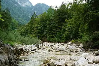 ![]() Der Gosaubach zwischen Vordertal und dem Hallstätter See | ||