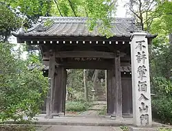 Hinter dem Museum erstreckt sich ein Garten, der bis zum Fuß der Anhöhe reicht und kleine Teiche enthält. Oben befinden sich zwei Teehäuser (Kokei-rō und Fujimi-tei), zahlreiche Steinfiguren und zahlreiche Steinlaternen sowie ein kleiner Schrein. Auf dem terrassenförmig gestalteten Hang steht, als städtisches Naturdenkmal eingetragen, die „Kobushi-Magnolie von Kaminoge“. Ein Stein neben dem alten Tempeltor im Garten trägt die Inschrift „不許葷酒入山門“, d. h. „Keine Erlaubnis: mit Knoblauch oder Alkohol durchs Tempeltor“. Im Hintergrund sieht man einen Nyorai-Buddha inmitten eines Altar-Ensembles auf halber Höhe. Der Garten enthält auch eine größere Sammlung von Steinlaternen.