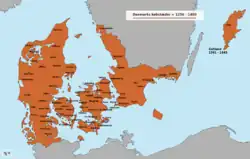 Seitdem war Gotland dänisch. Im Krieg Dänemarks gegen Schweden besetzten 1394 die Vitalienbrüder die Insel als Operationsbasis, wo sie sich als Freibeuter unter der Losung „Gottes Freunde, aller Welt Feinde!“ allmählich verselbstständigten und zu gefürchteten Seeräubern entwickelten. Auf Vivesholm liegen noch die Reste einer Befestigungsanlage, die Albrecht von Mecklenburg nach seiner Absetzung als schwedischer König als Anführer der Vitalienbrüder bauen ließ. Schließlich vertrieb der Deutsche Orden unter Konrad von Jungingen 1398 die Vitalienbrüder von Gotland, das dem Ritterorden von Schweden verpfändet worden war.[5] 1408 wurde die Insel Margarethe von Dänemark zugesprochen. Erich von Pommern begann 1411, am Südende Visbys eine Burg zu errichten. 1439 wurde er als dänischer König abgesetzt, herrschte aber noch elf Jahre über Gotland, bevor er die Burg 1448 dem neuen dänischen König übergab.