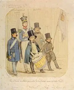 Im Übrigen sah Keller die tragische Schauspielkunst eher im Niedergang begriffen, die komische dagegen im Aufschwung. Er besuchte das Friedrich-Wilhelm-Städtische und das Königsstädtische Theater, wo Berliner Lokalpossen von David Kalisch und Wiener Volkskomödien gegeben wurden, Stücke, die es den Darstellern erlaubten, aus dem Stegreif bissige politische Bemerkungen einzuflechten und so die Zensur zu unterlaufen. Lebhaft habe er empfunden, wie dabei «das arme Volk und der an sich selbst verzweifelnde Philister Genugtuung findet für angetane Unbill». Auch stecke in den Couplets «mehr aristophanischer Geist» als in den bildungsbürgerlichen Lustspielen der Zeitgenossen. Volk und Kunst, so schien ihm, strebten hier mit vereinten Kräften nach einer Posse «edlerer Natur», einer neuen Form der hohen Komödie, für die freilich die Zeit noch nicht reif sei,[46] – Ansichten, die sich schwer mit dem Vorsatz des Dichters vertrugen, fleißig Theaterstücke zu liefern und damit ein geregeltes Einkommen zu erzielen.