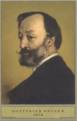 Gottfried Keller (* 19. Juli 1819 in Zürich; † 15. Juli 1890 ebenda, heimatberechtigt in Glattfelden und Zürich, ebenda auch Ehrenbürger) war ein Schweizer Maler, Dichter, Politiker und Erster Staatsschreiber des Kantons Zürich.[2] Kellers Werk ist bestimmend für den Kanon des bürgerlichen Realismus. Er zählt zusammen mit Jeremias Gotthelf und Conrad Ferdinand Meyer zu den bedeutendsten deutschsprachigen Schweizer Autoren des 19. Jahrhunderts.[3]