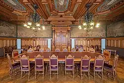 Der heute als Gotthardsaal bezeichnete ehemalige Verwaltungsratssaal der Gotthardbahn-Gesellschaft gehört zu den wertvollsten Innenräumen des Historismus in Luzern. Das ganz aus Nussbaumholz geschaffene Interieur umfasst ein reich verziertes Brusttäfer mit Nischen im Stil der Neurenaissance. Die darüber angebrachten gobelinartigen Stoffmalereien zeigen landschaftliche Szenen mit Kunstbauten der Gotthardbahn. Sie wurden vom Inneneinrichtungshaus A. Ballié, Basel, nach Fotografien ausgeführt, welche der renommierte französische Fotograf Adolphe Braun für die Gotthardbahn-Gesellschaft erstellt hatte. Der dreiteilige grosse Tisch mit den lederbezogenen Stühlen wurde vom Luzerner Möbelfabrikanten F. Herzog angefertigt. Im Rahmen des Umbaus des Gotthardgebäudes zum Gerichtsgebäude wurde der Saal nach den Vorgaben der Denkmalpflege restauriert.