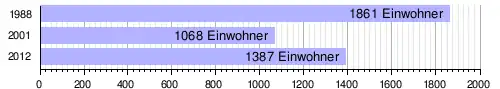 Im Hauptort lebten bei der Volkszählung 2012 1387 Einwohner in 214 Haushalten,[1] bei der Volkszählung 2001 1068 in 195 Haushalten[9] und bei der Volkszählung 1988 1861 in 390 Haushalten.[10]