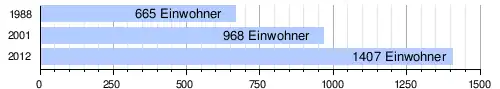 Das Dorf hatte 665 Einwohner bei der Volkszählung 1988,[5] 968 Einwohner bei der Volkszählung 2001[6] und 1407 Einwohner bei der Volkszählung 2012.[1]