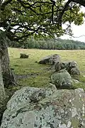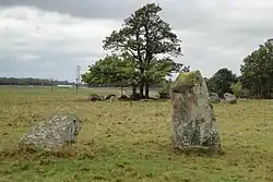Auf dem Gräberfeld liegen zwei Richterringe, eine nahezu rechteckige Steinsetzung, fünf Bautasteine und sechs Findlinge. Ein Steinkreis hat einen Durchmesser von 18 Metern und besteht aus 12 (ursprünglich 13) bis zu 1,4 Meter hohen Felsblöcken. Der andere Richterring ist beschädigt und besteht aus elf Steinen. Die Originalanzahl kann nicht ermittelt werden. Fünf der Steine stehen aufrecht oder sind geneigt und knapp zwei Meter hoch. Die Größe des Richterrings beträgt etwa 30 Meter. Er ist nach dem Kreis auf Blomsholm (33 m) der größte in Schweden.