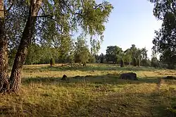 Das Gräberfeld zeichnete sich durch eine große Formenvielfalt prähistorischer Bestattungsformen aus. Es bestehen etwa 140 Steinsetzungen, darunter mehrere dreigezackte Stern und zwei besonders große flache Steinsetzungen. Nördlich einer auf dem Gelände bestehenden Pächterhütte befindet sich ein aus der Bronzezeit stammender Grabhügel.