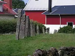 Die neun erhaltenen Menhire der Reihe (früher waren es elf oder mehr) sind der Höhe nach geordnet, zwischen 3,2 und 1,4 Meter hoch und stehen in zwei bis sechs Meter Abstand. Bautasteine in Reihen finden sich mitunter auch auf anderen Gräberfeldern in Bohuslän.