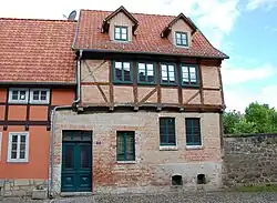 - ↑ Hans-Hartmut Schauer, Das städtebauliche Denkmal Quedlinburg und seine Fachwerkbauten, Verlag für Bauwesen Berlin 1990, ISBN 3-345-00233-7, Seite 70