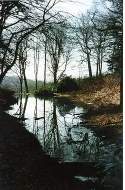 In einer Senke liegt ein Teich, der aus umliegenden Quellen gespeist wird. Hier sind die seltenen Kammmolche (Triturus cristatus-Superspezies), Edelkrebse (Astacus astacus) sowie u. a. der Wasserhahnenfuß (Ranunculus aquatilis L.) zu Hause.