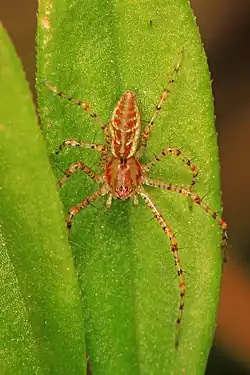 1. a b c d e Allen R. Brady: The lynx spiders of North America, north of Mexico (Araneae: Oxyopidae). In: Harvard University (Hrsg.): Bulletin of the Museum of Comparative Zoology. Band 131, Nr. 13. Cambridge 1964, S. 507.