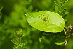 Zu den Prädatoren der Grünen Luchsspinne zählen mitunter auch andere Spinnen, etwa Echte Dornfinger (Cheiracanthium sp.)