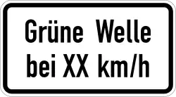 Um dynamische Geschwindigkeitsempfehlungen für eine grüne Welle anzubieten, wurden in einigen deutschen Städten Wechselverkehrszeichen aufgestellt, die eine Kombination aus einer Richtgeschwindigkeitsangabe und einem Piktogramm in Form einer Grünen Welle anzeigen.[5] Die Darstellung der grünen Welle variiert jedoch leicht. In Heidelberg wird dieses Piktogramm beispielsweise in einen weißen Kreis eingefasst, während es in Dresden frei steht.[5][6]