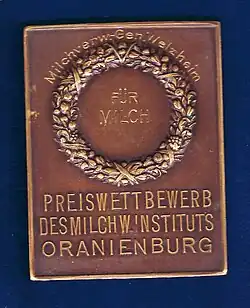 5. Grüne Woche 1930 Preisplakette des Milchwirtschaftlichen Instituts Oranienburg, Vorderseite