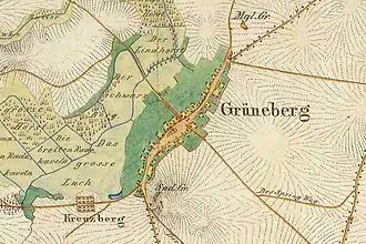Im Jahr 1900 war Grüneberg eine Landgemeinde mit einer Fläche von 1756 ha, zu deren Bezirk die Wohnplätze Grüneberger Bruch und Grüneberg-Kreuzberg gehörten. 1925 wird darüber hinaus die Ansiedlung Pappelhof als Wohnplatz genannt.[4]