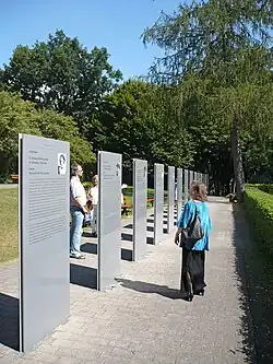 Im westlichen Teil des Parks, in unmittelbarer Nähe des Festspielhauses, residierte von 1936 bis 1945 der Bayreuther Gauleiter Fritz Wächtler in einer prächtigen Villa. Das Gebäude wurde 1999 abgerissen.[15] Gegenüber, vor dem Festspielrestaurant neben dem Festspielhaus, erinnert seit 2012 die Ausstellung Verstummte Stimmen an Sänger, Orchestermusiker und Mitglieder des Festspielchores, die in Bayreuth wirkten und während der Zeit des Nationalsozialismus aus unterschiedlichen Gründen – meist ihrer jüdischen Herkunft wegen – nicht mehr auftreten durften.