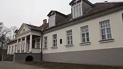 Das Gut[9] wurde im Jahr 1688 gegründet und hatte mehrere Besitzer aus dem baltischen Adel. Das jetzige Gebäude war im klassizistischen Stil erbaut worden und im Jahr 1905 im Zuge der Aufstände zerstört und später restauriert. Neben den Grünewaldts war der berühmteste Bewohner des Herrenhauses der Dramatiker August von Kotzebue, der das Anwesen 1804 erwarb. Während seiner Zeit wurde ein kleines Theater auf dem Gut errichtet und Kotzebues Stücke wurden oft aufgeführt.