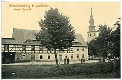 Bis Mitte des 20. Jahrhunderts gab es vier Gasthöfe und Schankwirtschaften in Grünlichtenberg. Der erste Gasthof in Grünlichtenberg befand sich nicht im Ortskern, sondern ca. 2 Kilometer außerhalb auf der halben Strecke nach Höckendorf. Ein zweiter Gasthof stand bzw. steht in der Nähe der Kirche. Im sogenannten Oberdorf befand sich „Herrmanns Restauration“, später als „Näthers Gaststätte“ bekannt, und im Unterdorf in der Nähe der Schmiede „Clara Ulbrichts Bierausschank“.[16]