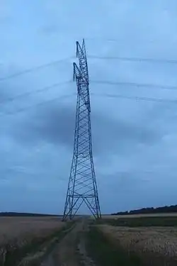 - Südlich des Ortsteils Krensheim befindet sich ein Hochspannungsmast, unter dessen Beinen ein Feldweg hindurchführt.