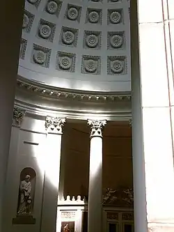 Im Innenraum der Grabkapelle, der etwa 20 Meter hoch ist und einen Durchmesser von rund 24 Metern hat, sind Kolossalstatuen der vier Evangelisten in Wandnischen aufgestellt. Sie bestehen wie die beiden Sarkophage im Untergeschoss aus Carraramarmor und wurden von Hofbildhauer Johann Heinrich Dannecker (Evangelist Johannes), seinem Schüler Theodor Wagner und nach Entwürfen des Dänen Bertel von Thorvaldsen gefertigt. Die Statue des Evangelisten Markus stammt von Bildhauer Johann Nepomuk Zwerger.