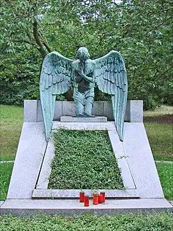 In einem Erdgrab, das von einer Engelsfigur mit ausgebreiteten Flügeln geschmückt wird, welche von dem Bildhauer Ludwig Habich geschaffen wurde, ruht: