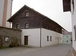 Am Westrand des die Kirche umgebenden Friedhofs stehen ein denkmalgeschütztes Kramerhäusl, ein zweigeschossiger und giebelständiger Schopfwalmdachbau mit Blockbau-Obergeschoss, Umlaufschrot und Giebellaube aus dem 18. Jahrhundert (Denkmalnummer D-3-72-146-21)[40] und das ehemalige Schulhaus, ein zweigeschossiger und traufständiger Satteldachbau mit verschindeltem Blockbau-Obergeschoss, erbaut im 18. Jahrhundert, Umbau im späten 19. Jahrhundert (Denkmalnummer D-3-72-146-20).[41]