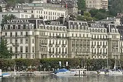 Das Grand Hotel National ist ein 5-Sterne-Hotel in Luzern, das 1870 eröffnet wurde. Es liegt direkt am Vierwaldstättersee am Nationalquai, mit Ausblick über das Seebecken und die Innerschweizer Alpen. Es bietet 62 Zimmer und Suiten, 24 Residenzen, 2 Ballsäle, vier Tagungsräume und verfügt über drei Restaurants, ein Café und eine Bar. Der Hotelbau ist als Kulturgut von nationaler Bedeutung eingestuft und steht damit als A-Objekt unter Denkmalschutz.[1] Gleich östlich davon befindet sich der ehemalige Kursaal (heute Grand Casino Luzern) und anschliessend das Palace Luzern.