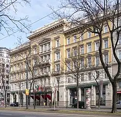 Anton Schneider (1820–1872), der „eigentliche Begründer des Hotelgeschäftes zu Wien in größerem Style“,[2] stellte 1863 am selben Ort (und somit im ersten Abschnitt der entstehenden Wiener Ringstraße) nach Plänen des Architekten Carl Tietz (1831–1874) die Maison meublée fertig, das sogenannte Schneider’sche Haus, ein palaisartiges 56,6 m langes und 23,5 m tiefes Gebäude, in dem unter anderem Erzherzog Wilhelm (1827–1894) Wohnung bezog.[3]