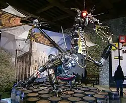 In der Mitte der Halle standen vier Säulen mit einer Höhe von sieben Metern. Für diese hatte der Zimmermann Haywood eine mit Blättern, Zweigen und Beeren geschmückte Verkleidung aus Ulmenholz geschnitzt, die als Aufhänger für insgesamt 900 Pistolen diente. Abgeschlossen wurden die Säulen durch korinthische Kapitelle und sieben geschnitzte Drachenköpfe. Über den Säulen befand sich eine von Haywood gestaltete Darstellung einer Meteoroidenspur. Die gesamte Aufstellung war um 16 große Kisten herum aufgebaut, in denen sich je 1.200 Musketen befanden.