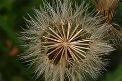 Die Achäne ist 5 bis 8 Millimeter lang[2] und verjüngt sich nach oben hin.[4] Der schmutzig- bis gelblich-weiße Pappus ist mehrreihig, die äußeren Pappusborsten sind sehr kurz und die inneren federig.[1][2]