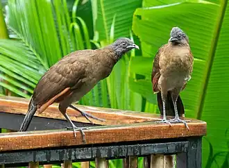 - ↑ a b c d e J. del Hoyo und G. M. Kirwan: Gray-headed Chachalaca (Ortalis cinereiceps), version 1.0. In: J. del Hoyo, A. Elliott, J. Sargatal, D. A. Christie und E. de Juana (Herausgeber): Birds of the World, Cornell Lab of Ornithology, Ithaca, NY, USA. Ortalis cinereiceps
