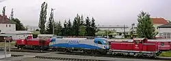 Die Triebwagen der Reihe VT 70 schieden im Laufe des Jahres 2013 aus dem Dienst, der letzte Zug nach Fahrplan mit einer dieser Garnituren fuhr am 1. Juli 2013, eine Sonderfahrt am 11. August 2013.[62][52] Für Güterzüge werden Maschinen der Baureihen DH 1700, DH 1500 und DH 1100 eingesetzt, im Rangierdienst neben oben genannten vor allem Loks der Baureihe DH 600. Überdies stehen noch einige Bahndienstfahrzeuge im Dienst der GKB sowie Schienenbusse der Reihe VT 10, die jedoch nicht mehr im Planverkehr eingesetzt und von den „Steirischen Eisenbahnfreunden“ für Sonderfahrten betreut werden. Im Juni 2006 wurden von der GKB Dieseltriebwagen des Typs Desiro erprobt. Am 20. Februar 2009 sind aber 13 klimatisierte dieselelektrische Triebwagen des Typs GTW 2/8 bestellt worden, die mit einer Leistung von zweimal 382 kW 140 km/h erreichen und 141 Sitzplätze sowie 13 Klappsitze bieten.[63] Gegenüber dem ÖBB 5022 werden Verbesserungen des Sitzkomforts, der Einstiegssituation und der behindertengerechten Ausstattung genannt. Das offizielle Roll-In der ersten Garnitur erfolgte am 26. August 2010 am Graz Köflacherbahnhof. Die neuen Triebwagen sind mit dem Fahrplanwechsel 2010/2011 in Betrieb gegangen. Mittlerweile verkehren auf den Linien S-Bahn Steiermark und S-Bahn Steiermark 16 Zuggarnituren des GTW 2/8. Daneben kommen zu Spitzenzeiten die lokbespannten Doppelstockwagen zum Einsatz. Diese werden in der Regel von Diesellokomotiven der Baureihe DH 1500 gezogen, teilweise kommen auch die ebenfalls dieselbetriebenen Loks DH 1700 (primär im Güterverkehr bzw. bei Streckenarbeiten und Verschubdiensten eingesetzt) sowie Siemens ER20 zum Einsatz. Seit dem 4. August 2025 verkehren auf der Linie S-Bahn Steiermark nur noch Elektrolokomotiven des Typs Siemens Vectron mit, von der Deutschen Bahn, gemieteten Doppelstockwagen. Neben den genannten Lokomotiven werden von der GKB auch unter anderem die zwei Diesellokomotiven der Reihe DH 1100 eingesetzt, die primär im Güterverkehr und Verschub, in Ausnahmefällen aber auch im Personenverkehr zum Einsatz kommen.[64]