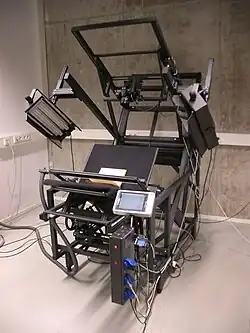 Der Grazer Buchtisch besteht aus einer Tischkonstruktion, auf die als Halterung eine Buchwiege montiert ist. Zum Scannen werden einzelne Buchseiten manuell auf einen sogenannten Unterdruckarm gelegt, der die Buchseite durch Ansaugen festhält und geringfügig spannt. Die spezielle Konstruktion des Buchtisches sorgt dafür, dass die über dem Buch angeordnete Kamera immer rechtwinklig zur Buchseite ausgerichtet ist. Bei neueren Geräten hilft eine Lasermarkierung bei der Positionierung der Vorlagen.