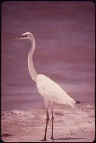Große weiße Reiher sind eine Unterart der Großen blauen Reiher und nur in den Florida Keys zu finden. Das Schutzgebiet wurde geschaffen, um die Großen weißen Reiher vor dem Aussterben zu bewahren. Ihre Federn waren beliebt, um Federhüte zu zieren. Heute sieht man diese schneeweißen Vögel auf hunderten kleiner Inseln in der Morgen- und Abenddämmerung bei der Futtersuche.