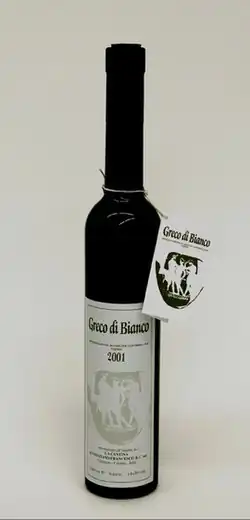Greco di Bianco ist der Name eines DOC/DOP-Weins (Denominazione di Origine Controllata/Protetta) in Kalabrien. In der sehr kleinen, am Ionischen Meer gelegenen Appellation wird ein gleichnamiger süßer Dessertwein in der Methode eines Passito gekeltert. Für DOC-Weine ist nur die weiße Rebe Greco Bianco (di Gerace) zugelassen, die nicht mit anderen in Süditalien verbreiteten Greco-Bianco-Reben, sondern mit der Malvasia di Lipari identisch ist.[1] Auf den Liparischen Inseln, vornehmlich auf Salina (Insel) wird aus Trauben dieser Rebe ebenfalls ein berühmter Passito, der Malvasia delle Lipari, hergestellt. Das Gebiet liegt innerhalb der Magna Graecia, sodass angenommen wurde, dass die Herkunft dieser Rebe in Griechenland liegt, doch haben neuere DNA-Untersuchungen diese Annahme nicht bestätigt.[2] Zweiter namensgebender Bestandteil der Bezeichnung für Wein und DOC ist der Ort Bianco, innerhalb dessen Gemeindegrenzen fast das gesamte Weinbaugebiet der Appellation liegt. In den 1960er Jahren drohte die Produktion dieses einstmals sehr anerkannten und stark nachgefragten Weines völlig zum Erliegen zu kommen. Um diesem Niedergang entgegenzuwirken, wurde 1980 die DOC als erstes geschütztes Ursprungsgebiet Kalabriens ins Leben gerufen. Die Vorschriften wurden zuletzt am 7. März 2014 aktualisiert.[3] Früher wurde ein Greco di Bianco fast ausschließlich auf 500 Milliliter fassende Bocksbeutel gezogen, heute kommen auch andere Flaschenformen mit diesem Fassungsvolumen zum Einsatz.