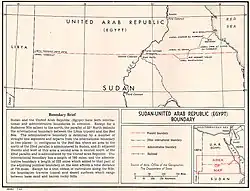 Ägypten war im 19. Jahrhundert Teil des Osmanischen Reichs, besaß jedoch ein hohes Maß an Autonomie. 1882 besetzte das Vereinigte Königreich Ägypten, das als Khedivat Ägypten faktisch und 1914 auch nominell zu einem britischen Protektorat wurde. Ägypten hatte traditionell Ansprüche auf den Sudan erhoben, die auch unter britischer Besetzung weiter bestanden. Nach Niederschlagung des Mahdi-Aufstands eroberten die Briten den Sudan und schufen im Januar 1899 den Anglo-Ägyptischen Sudan als Kondominium, dessen Grenze zu Ägypten der 22. nördliche Breitengrad wurde. Im März 1899 wurde abweichend der kleine Wadi Halfa Salient am Nil mit einer Gesamtfläche von 210 km² geschaffen.[1] Mit einer weiteren Vereinbarung aus dem Jahr 1902 wurde im Ostteil des Grenzverlaufs eine Verwaltungsgrenze gezogen, die das südlich des 22. nördlichen Breitengrads gelegene Bir Tawil der ägyptischen Verwaltung zuwies, das nördlich dieser Linie gelegene, an das Rote Meer angrenzende und wesentlich größere Hala’ib-Dreieck dagegen der des Sudan.