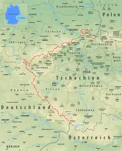 Nach undatierten, im Jahr 2017 abgerufenen Angaben hatte die deutsch-tschechische Grenze eine Länge von 811 Kilometern,[9] davon 454 Kilometer zwischen Sachsen und Böhmen sowie 357 Kilometer zwischen Bayern und Böhmen.