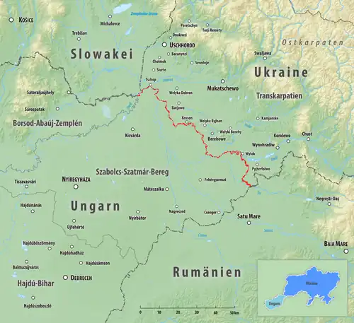 Die heutige Grenzziehung wurde nach dem Ersten Weltkrieg 1918 nach dem Zerfall Österreich-Ungarns von einer internationalen Kommission als Teil der ungarisch-tschechoslowakischen Grenze erarbeitet. Nachdem die Karpatenukraine nach dem Zweiten Weltkrieg an die Sowjetunion gefallen war, wurde sie zur Grenze zwischen der sowjetischen Unionsrepublik Ukrainische SSR und der Ungarischen Volksrepublik. Nach dem Zerfall der Sowjetunion 1991 wurde sie die Grenze zwischen Ungarn und der nun unabhängigen Ukraine.[3]