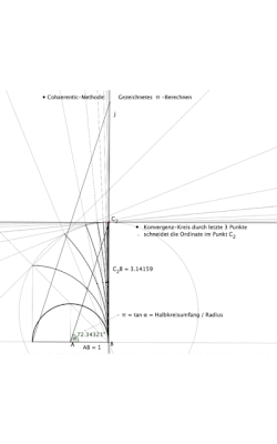 - Grenzwert mit einem Grenzpunkt ist das Kreisverhältnis πZahl = Zahl des Kreisumfangs / Zahl des Kreisdurchmessers