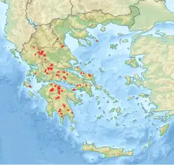 - ↑ P. Tsopelas, K. Korhonen: Hosts and distribution of the intersterility groups of Heterobasidion annosum in the highlands of Greece. In: European Journal of Forest Pathology. Band 26, Nr. 1, Februar 1996, S. 4–11, doi:10.1111/j.1439-0329.1996.tb00705.x.