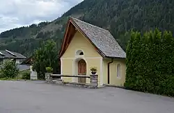 Die Kapelle wurde im 19. Jahrhundert errichtet und 1977 renoviert. Es handelt sich um einen kleinen Kapellenbau mit fast quadratischem Grundriss und Rundapsis, der durch ein schindelgedecktes Dach über Hohlkehle geschützt ist. Äußerlich ist die Kapelle durch gelbe Rauhputzwände mit weißer, glattverputzter Rahmengliederung geprägt, wobei sich das Bogenportal mit darüberliegendem Lünettenfenster in der nördlichen Giebelwand befindet. Die Längswände sind jeweils durch ein rundbogiges Fenster durchbrochen.