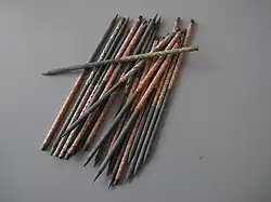 Einfache historische Griffel waren aus Holz oder Bein. Die kostbaren bestanden aus Metall und wurden meist geschmiedet.