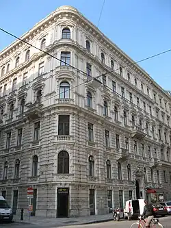 Das Gebäude errichtete Wilhelm Stiassny 1882–1883 im Stil der Neurenaissance. Es besitzt einen dreigeschoßigen Erker und ein gebändertes Halbsäulenportal. Im Vestibül befinden sich stuckierte Lünetten mit Puttenmedaillons und Spiegelgewölbe.