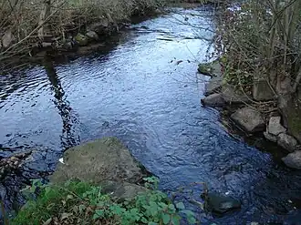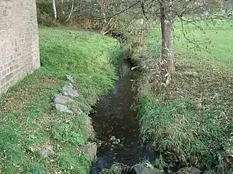 Zusammenfluss von Äußerer Bach (Rohr hinten) und Schwarzengrundbach (rechts)