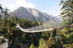 70 Meter über der Schlucht des Handeckfalls ermöglicht die Hängeseilbrücke einen Blick auf den Wasserfall. Bei der Talstation der Gelmerbahn gelegen, ist die Brücke die ideale Verbindung zum Hotel Handeck.