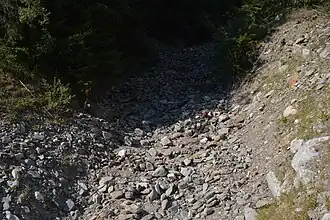 Ausgetrocknetes Bachbett im Bereich der Defereggentalstraße | ||