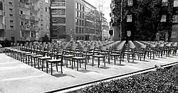 Nach mehrheitlichem Beschluss des Leipziger Stadtrates im Oktober 2000 konnte das Grundstück zu einem großflächigen Mahnmal umgestaltet werden. Das am 24. Juni 2001 eingeweihte Mal zeichnet auf einer Fläche von 12 × 12 Metern den Grundriss des zerstörten Gebäudes nach. Das Innere bildet ein Feld aus 140 leeren Bronzestühlen, die den Verlust der architektonischen Hülle erfahrbar machen sollen. Die westliche Grundstücksgrenze bildet eine Wand aus Sichtbeton mit Texten in englischer, deutscher und hebräischer Sprache auf jeweils drei Bronzetafeln.