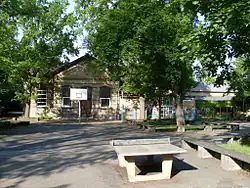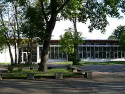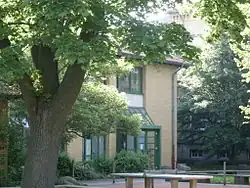 An der Rückseite zum Schulhof hin steht geschrieben: