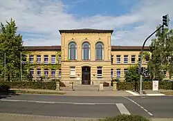 1957 erhielt die Schule mit dem Elster-und-Geitelhaus ein weiteres Gebäude, in dem heute die gymnasiale Oberstufe unterrichtet wird. Benannt wurde das neue Schulgebäude nach den durch ihre Forschungen bekannt gewordenen Oberlehrern Julius Elster und Hans Geitel, die Pionierarbeit auf dem Gebiet der Radioaktivität leisteten.[2]