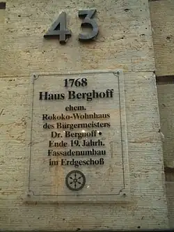 Das zweigeschossige Traufenhaus mit sieben Achsen wurde 1768 im Auftrag des ehemaligen Bürgermeisters Dr. Berghoff erbaut. Die fein gegliederte und nach französischem Vorbild in Norddeutschland seltene ornamentierte Rokoko-Sandsteinfassade ist vorgeblendet. Sie weist über dem Mittelrisalit einen geschwungenen Giebel mit Ochsenauge sowie Vasenbekrönung auf. Das Gebäude brach in seiner Entstehungszeit erstmals mit der traditionellen giebelständigen Bauweise. Auch die Ecklisenen sind mit Vasen bekrönt. Die Fassade des Wohnhauses wurde zum Ende des 19. Jh. umgebaut und ein Ladengeschäft im Erdgeschoss eingerichtet. Nach den starken Zerstörungen im Zweiten Weltkrieg ist es eines der wenigen erhaltenen historischen Bürgerhäuser in der niedersächsischen Stadt. Es wurde jedoch im Inneren gänzlich erneuert.