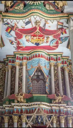 Die Ausstattung der Erbauungszeit mit Toraschrein ist erhalten geblieben.
